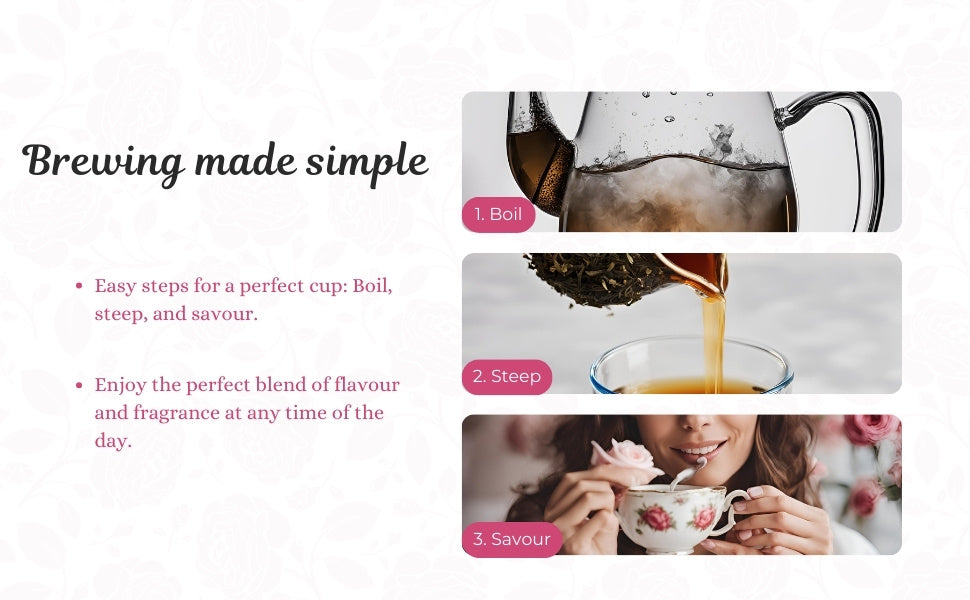 Each sip of rose flavored tea transports you to a serene garden, surrounded by blooming roses and a peaceful ambiance.